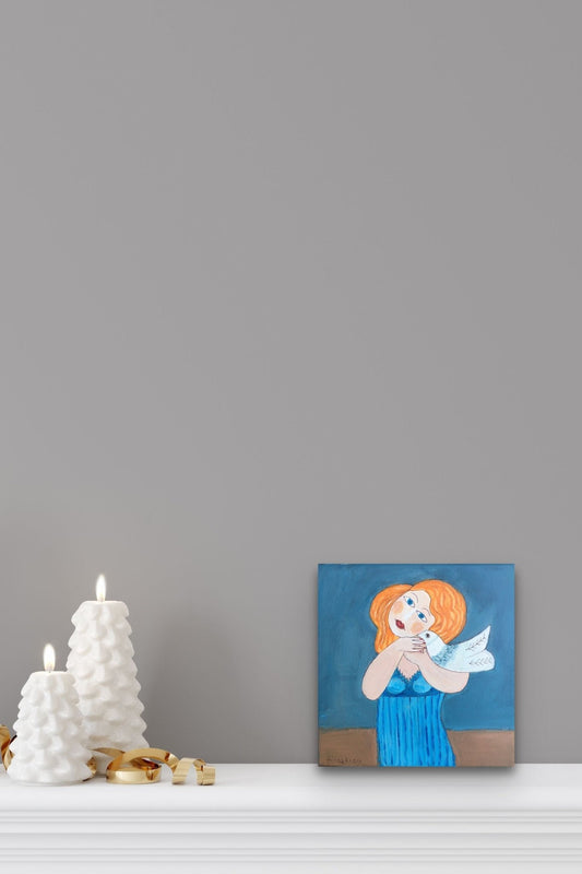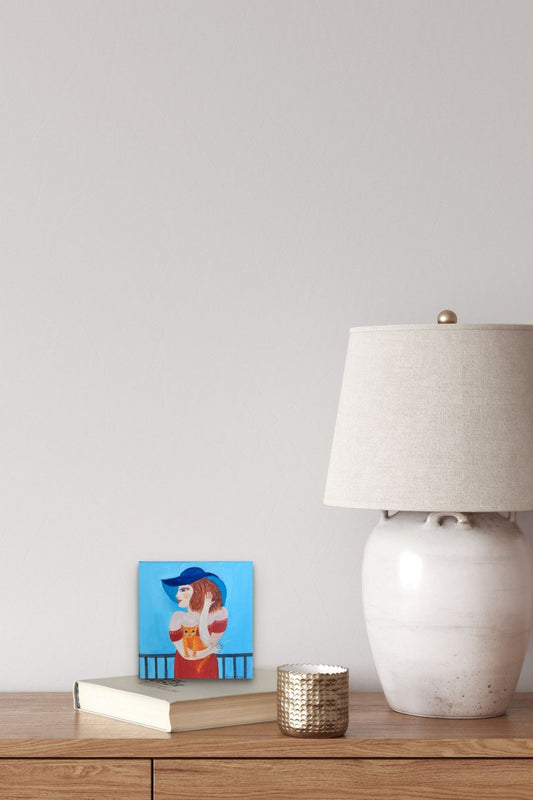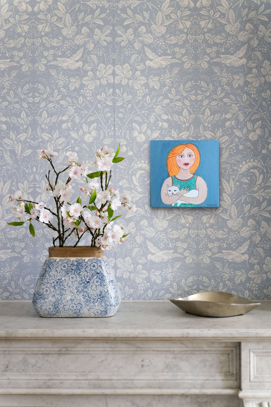Woman with Orange Hair and Cat by Peggy Hinaekian