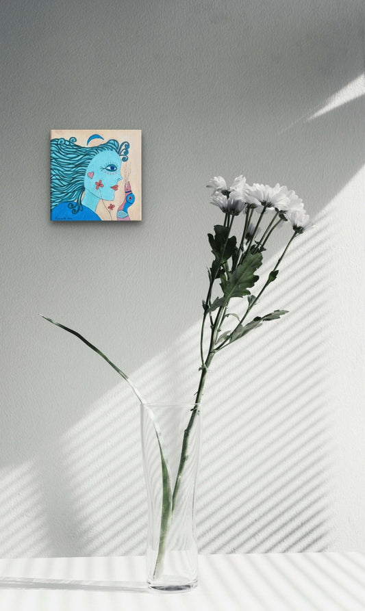 Woman with Orange Hair and Cat by Peggy Hinaekian